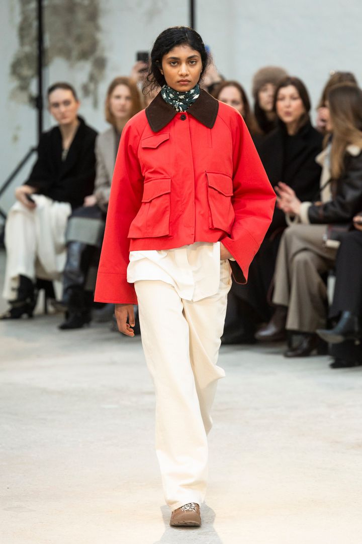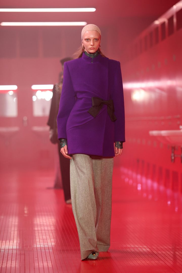 2025-26年秋冬のランウェイは、赤、青、緑のテクニカラーもよく目立っていた。特にネイビーとチェリーレッドは、寒い季節に力強さを発揮し、ネイビーの落ち着きがチェリーレッドの鮮やかさをほどよく和らげてくれる。