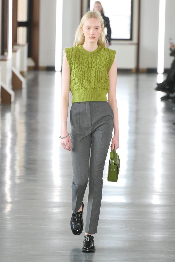 ポップなアップルグリーンやライムグリーンは、さまざまな濃淡のグレーを冬眠から目覚めさせる相性抜群カラー。注意すべきは、この色を使いすぎないこと。ニットやバッグ、靴のいずれかひとつに取り入れるだけで十分に効果を発揮する。