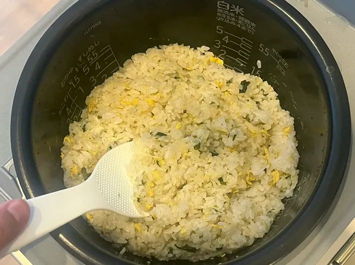 炊飯前に『卵スープ』を入れてみて! おにぎりにもぴったりな“味しみチャーハン”の作り方