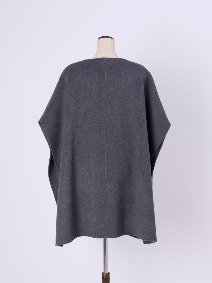 前に下がるシルエットがスタイリッシュ。ショールをさっと羽織るような感覚で、ラフに着こなしてもおしゃれに決まります。