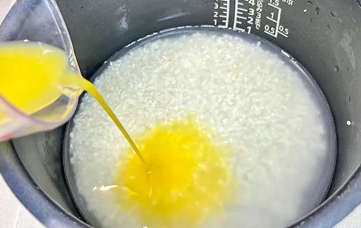 2. 米と一緒に炊飯器へ入れたのは? まさかの『炊き込みご飯』に「ピラフみたい!」「意外と合う」