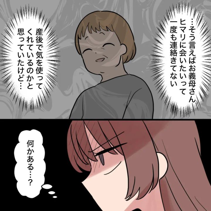 私は、義母が一度も「ヒマリに会いたい」と言い出さないことに違和感を覚えました。産後の私に気を遣ってくれているのかと思っていたけど、退院から数日経っても義母からの連絡はありません。トモヤの愛娘に会いたがらないのはおかしい・・・もしかして何かある?