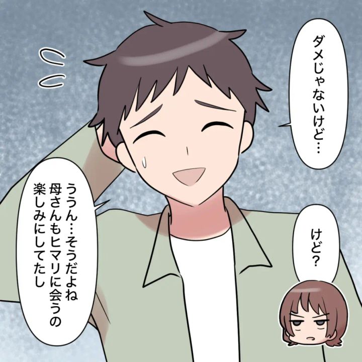 「ダメじゃないけど・・・」困ったように頭をかくトモヤ。「けど?」と私がじろりと視線を向けると、「ううん・・・そうだよね、母さんもヒマリに会うの楽しみにしてたし」と言いました。そんなトモヤの様子を見て、私はますます義実家に「何かある」と疑わずにはいられませんでした。