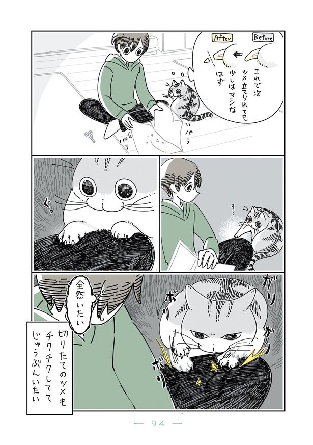 3. 猫に背中で爪研ぎされると痛い! 爪を切れば少しはマシになるかと思ったら?/夜は猫といっしょ5(63)