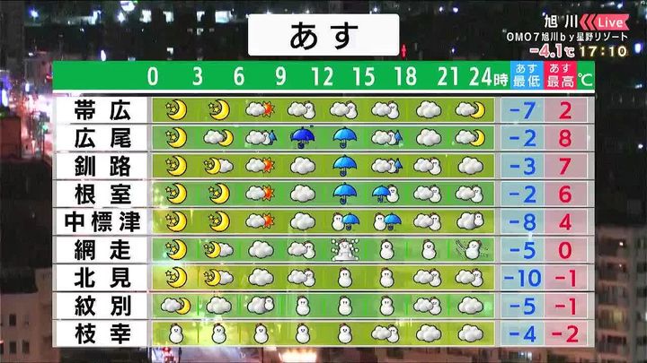※10日午後5時時点の情報です。最新の気象情報は、HBCウェザーセンターのホームページなどでご確認ください。HBCは気象庁の認可を2001年に得て以来、民間気象会社の一つとして「HBCの独自予報」を発信しています。