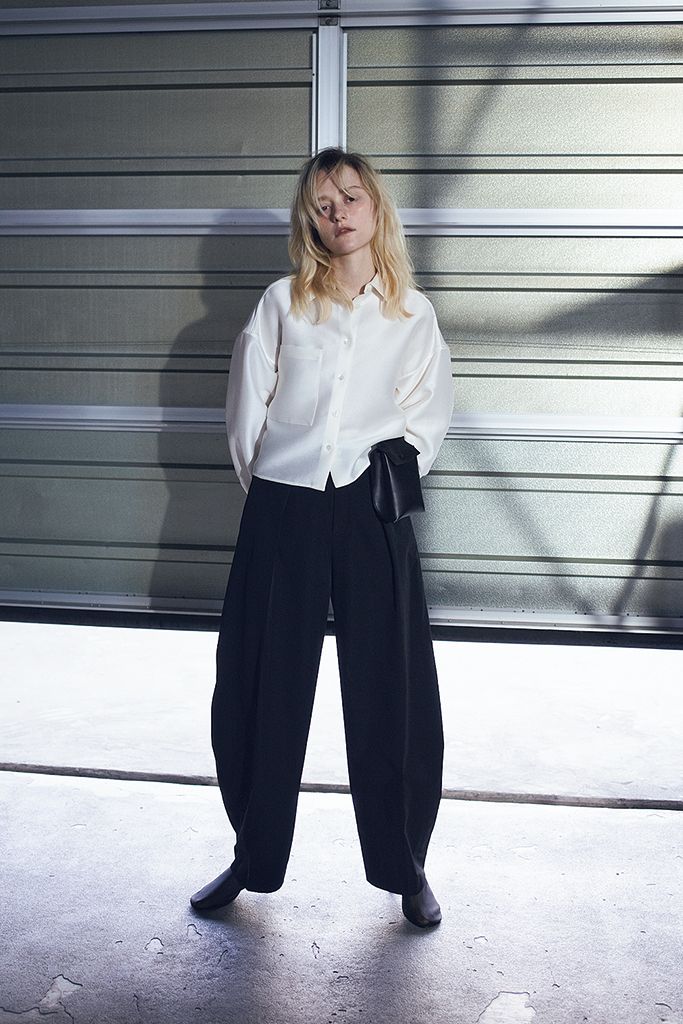 黒パンツ/LE PHIL(LE PHIL NEWoMan 新宿店) 白クロップトシャツ/ドローイング ナンバーズ(ドローイング ナンバーズ 新宿店) ウエストポーチ/マロウ(プレインピープル青山) シューズ/DOUBLE STANDARD CLOTHING(フィルム)
