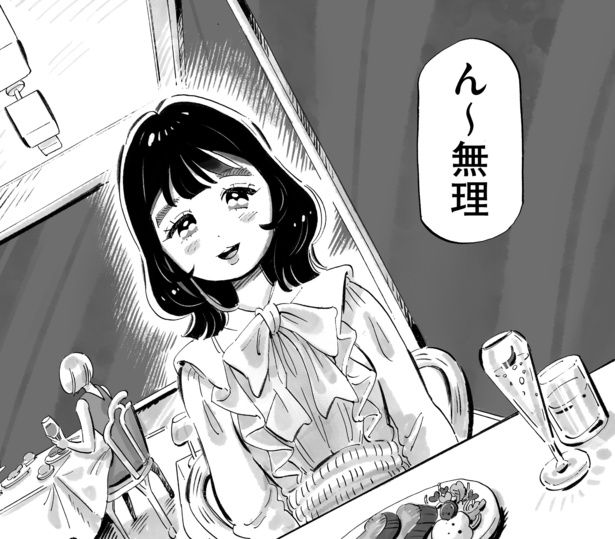 ――物語の冒頭で勝男のプロポーズを断った鮎美ですが、同棲生活中、勝男の上から目線のアドバイスにも嫌な顔をせずに聞き入れたり、「大好きな勝男さんのため」と笑顔で発言したり、“従順な彼女”であったことがうかがえます。鮎美はどんな女の子にしたいと思って描き始めたキャラクターですか?