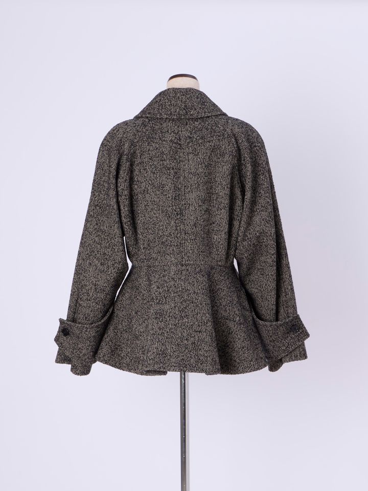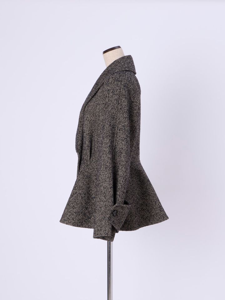 身にまとうと、ペプラムシルエットがより華やかでエレガント。上質なシェブロンウールのシックな魅力と、エフォートレスなサイズ感が大人のマチュアなコーデに最適です。お気に入りのベルトでウエストマークするのもおすすめ。