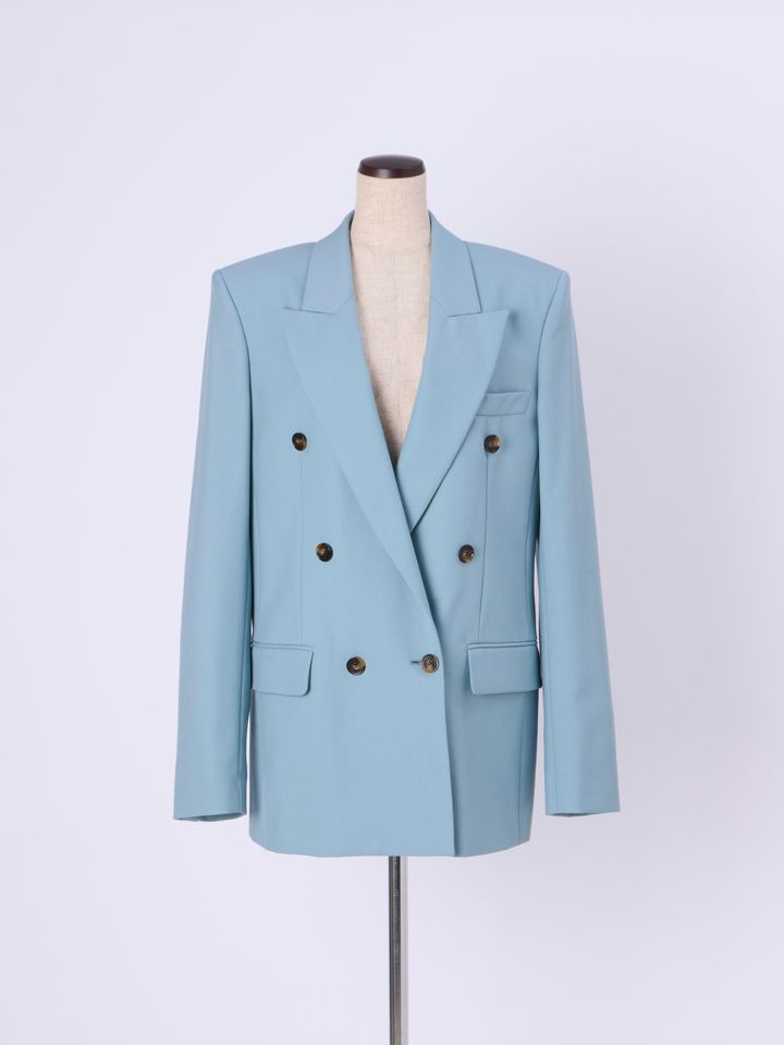 かっちりとしたシルエット、シャープなピークド ラペル。マスキュリンな表情の一着こそ、こんな透明感のある色合いが新鮮で軽やか。同デザインのパンツと着こなして、パーフェクトなワークコーデを体現して。