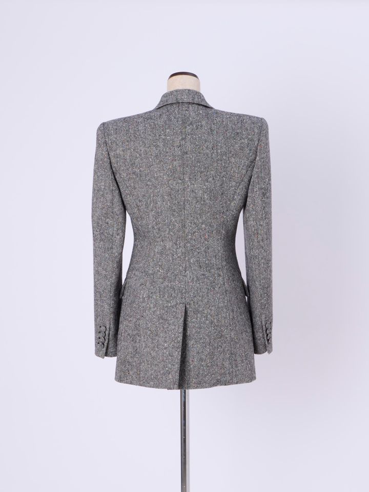 砂時計のようなシルエットが後ろ姿を凛とした表情に。緻密な計算であしらわれたセンターベントがゆとりを与えます。