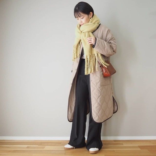 黒マフラー×ニュアンスカラーのコーデ