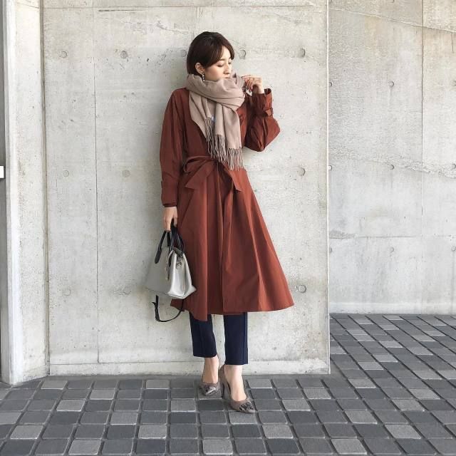 ブラウン・ベーシュマフラー×マフラーと同系色のコーデ