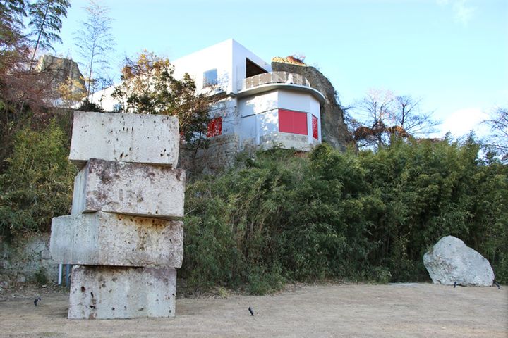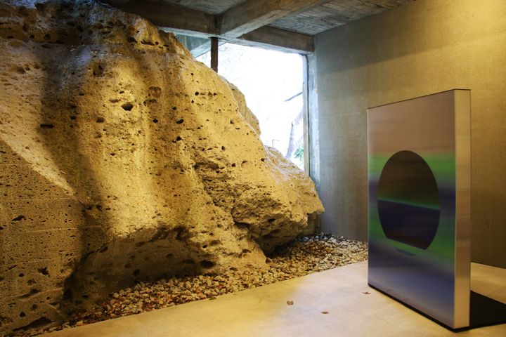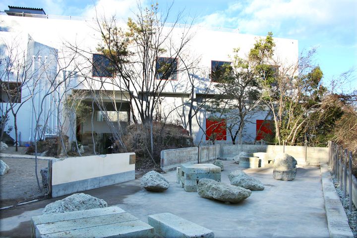 大谷石と建物、そしてアート作品が融合した空間をつくりだしている大谷グランド・センター。