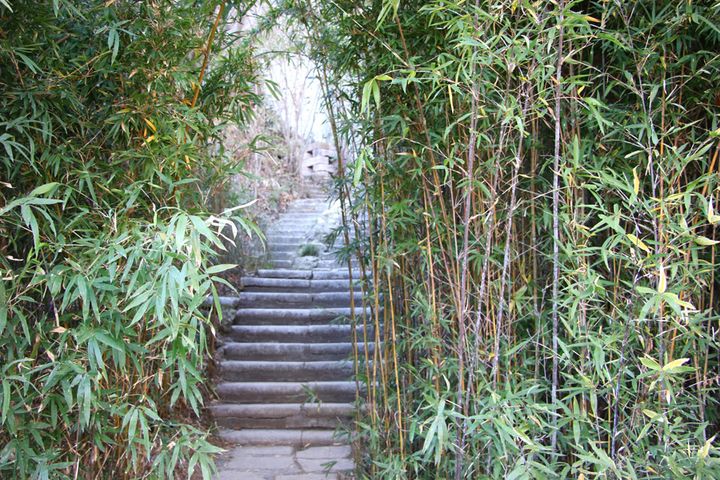 竹林の間の階段を上り、エントランスへ向かいます。