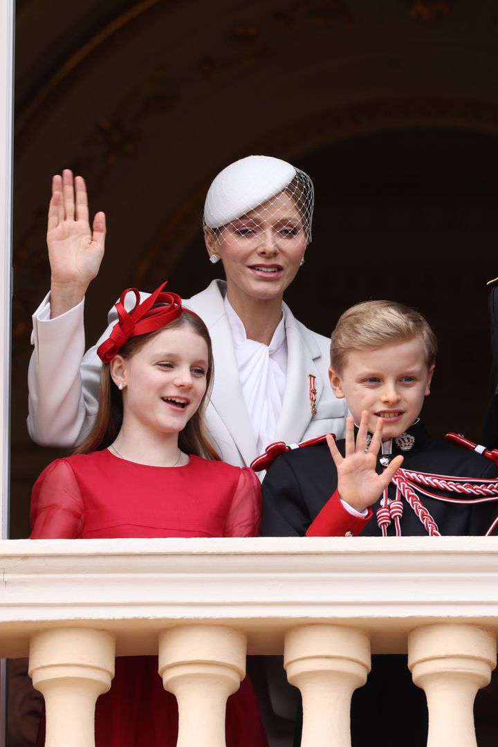 ガブリエラ公女(Princess Gabriella of Monaco)、シャルレーヌ公妃(Princess Charlene of Monaco)、ジャック公子(Prince Jacques of Monaco) Pascal Le Segretain / Getty Images
