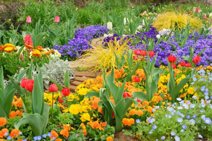 パンビオは1株の鉢植えでもこんもりした株に溢れるほどの花が楽しめます。けれど、春から咲き出すチューリップなどの球根やクローバーなどの葉ものと、寄せ植えにしたり花壇で混植するとさらにすてきです。