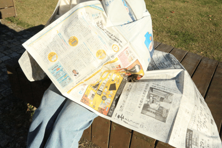 【学生がやってみた防災】想像以上に暖かい!新聞紙でつくった防寒グッズ