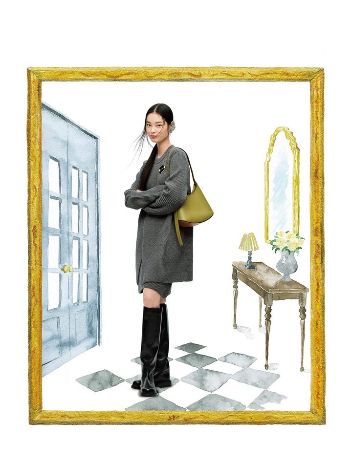 プルオーバー¥272,800 スカート¥154,000 バッグ“エルドラド”¥327,800 靴¥327,800[参考価格] イヤカフ[両耳用]¥184,800 ブローチ¥85,800(すべてジル サンダー/ジルサンダージャパン