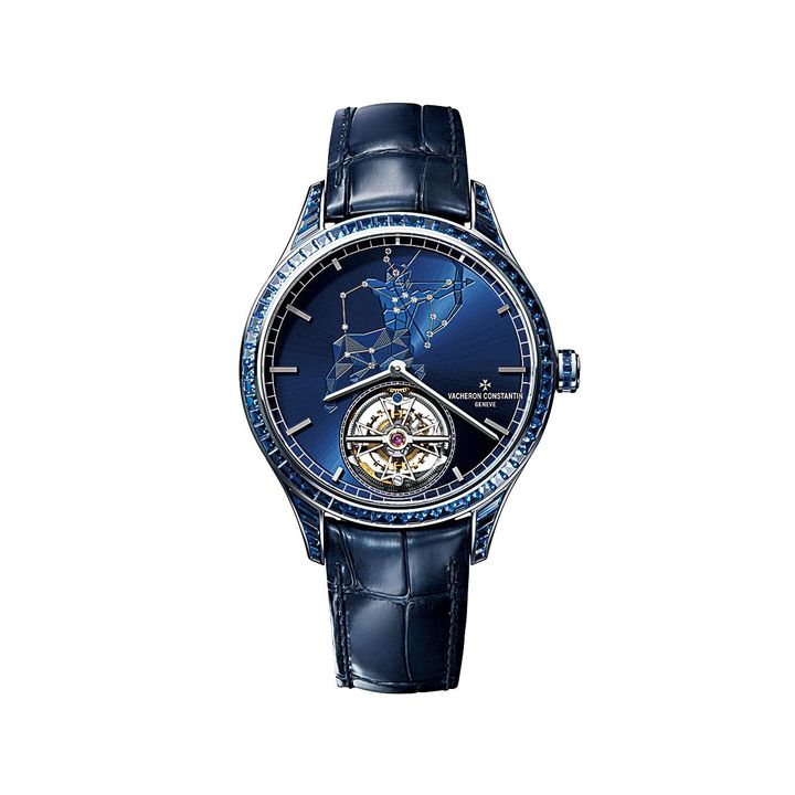 いて座のモチーフ。時計“メティエ・ダール - 12星座に想いを馳せて-”[WG×ダイヤモンド×サファイア アリゲーターストラップ ケース径39mm 自動巻き 限定生産]¥34,760,000(Vacheron Constantin/ヴァシュロン・コンスタンタン) Hearst Owned