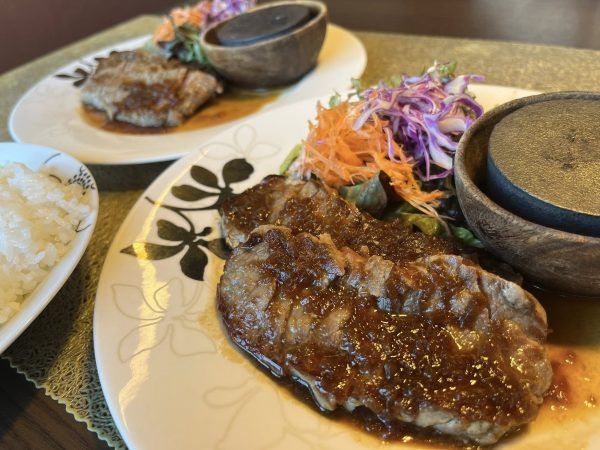 ふんわりやわらかいお肉にタマネギと醤油ベースのシャリアピンソースがかかっていて、ライスを食べる箸がとまりません!Wサイズなのでボリューム満点ですが、ぺろりと食べられちゃいます。通常サイズ(1,200円)でもしっかりした量がありますよ。