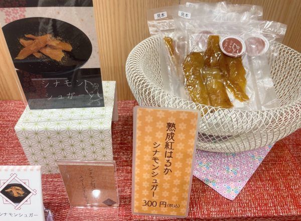 こちらは「熟成紅はるか シナモンシュガー」。黄金に輝く干し芋は300円とリーズナブル!