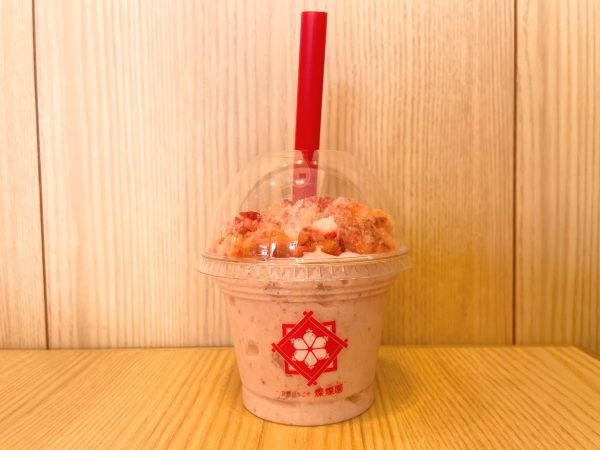そしてこちらは、プラス150円でセレクトした「甘熟いちごろシェイク」です。 淡いピンク色が可愛いこちらのいちごろシェイク、ひと口飲んでみると、イチゴの濃厚な果実感がミルクと溶け合っていて本当においしい! なんだこれは…!! 想像を上回る破壊力、すご! さすがイチゴ農園のドリンクです。