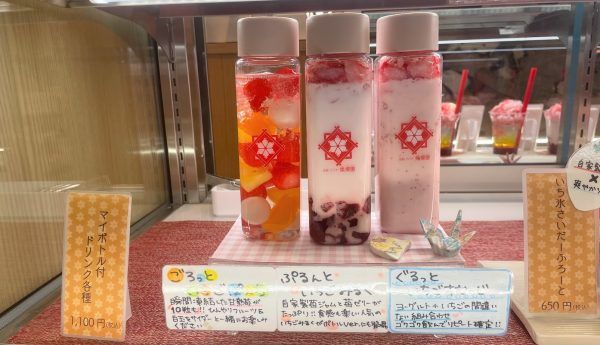 甘熟苺が10粒とフルーツ&白玉をサイダーで割った「ごろっといちごぽんち」や、自家製イチゴジャムたっぷりの「ぷるんといちごみるく」など、お土産にも喜ばれそうなマイボトル付きドリンクを発見! 飲み終わった後、再利用できるのも嬉しいですね♪