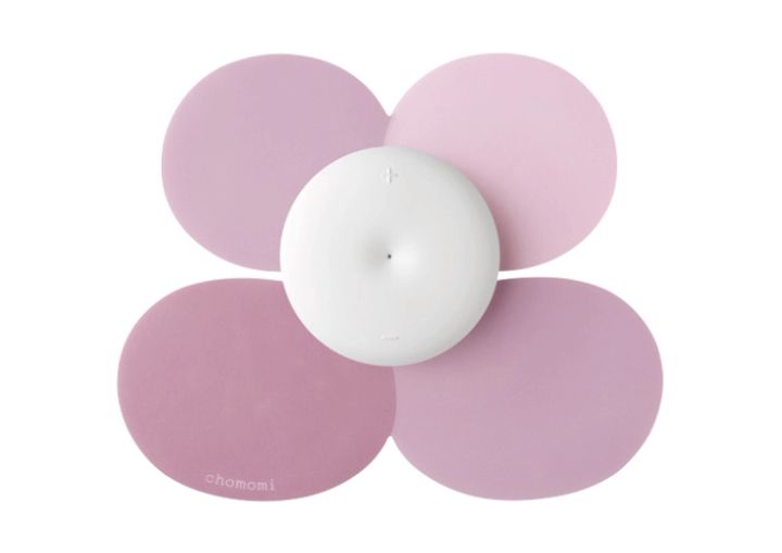 エステ向け機器を開発しているメーカーが、腸もみトリートメントを行うサロン施術を研究し、4 つの電極シートで再現したガジェット。chomomi 本体セット ¥49,500/伊藤超短波