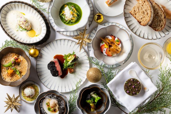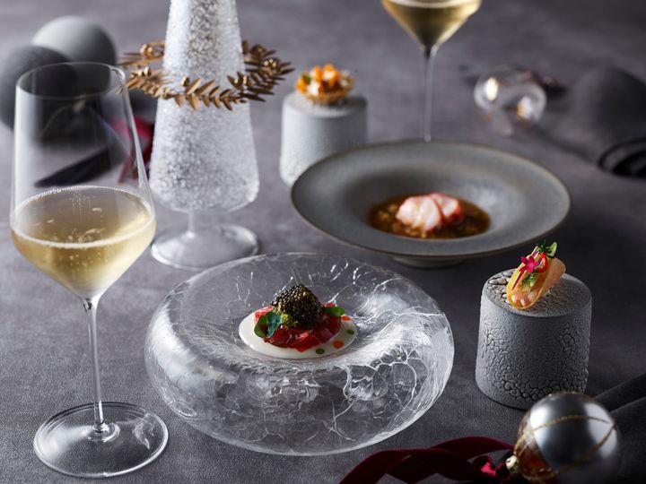 ミシュランの星に輝くセルジオ・ハーマン氏が監修し、“ニューイタリアン”を提供する「ル・プリスティン東京」では、フェスティブシーズンを彩る特別メニューを提供。タラバ蟹やロブスターなど贅沢な食材を使った一皿から、あか牛や冬の味覚アンコウを用いた独創的な料理などがラインナップします。デザートには、フレッシュなあまおうを使用したイタリアを彷彿とさせるトリコロールカラーの華やかなデザートも。シェフ渾身のスペシャルコースで優雅なひとときを過ごしてみては。