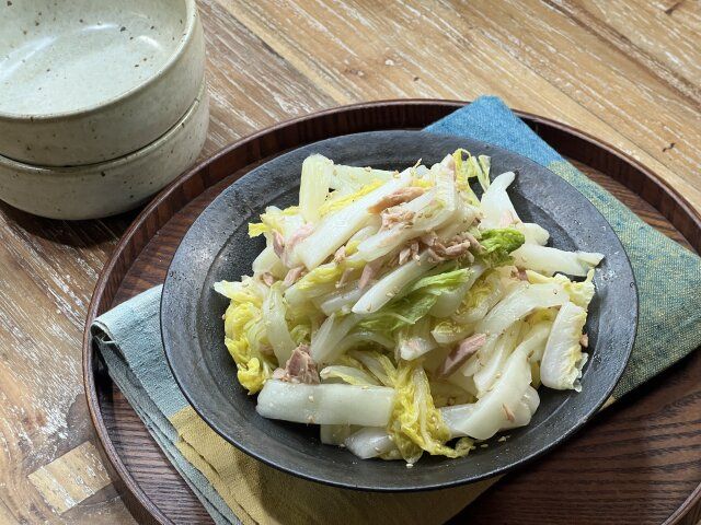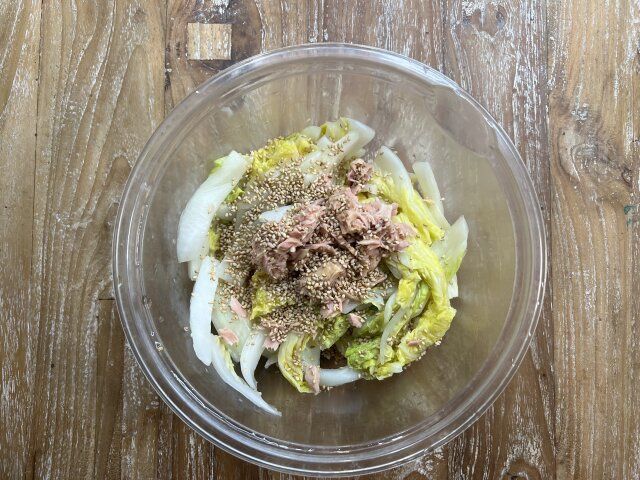 3. 「これなら1個余裕で食べきれる!」レンチンして和えるだけ!白菜のツナポン酢サラダ