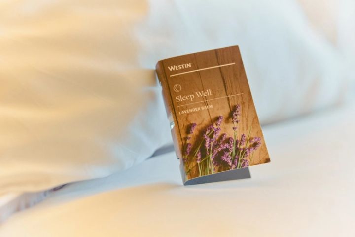 ウェスティンホテル横浜は「ウェルビーイング」をテーマに掲げているので、お部屋には安眠へのこだわりも詰まっています。ウェスティンホテルが独自に開発した「ヘブンリーベッド」を全室に導入。さらにベッドサイドには安眠用のラベンダーバームのご用意も。