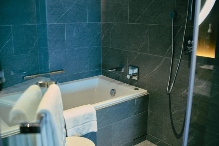 バスルームや洗面台まわりも高級感ある洗練されたデザインです。