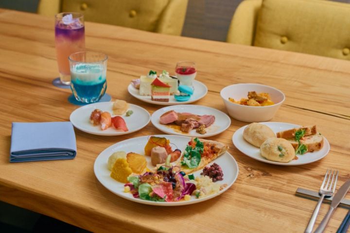 「美食の世界旅行」をテーマにした、和洋中どれも楽しめるインターナショナルビュッフェを提供。メインのビュッフェ台を始めとし、冷菜のビュッフェ台、お寿司用カウンター、スイーツビュッフェスペース、ドリンクカウンターと、大充実の内容です!かえでさんも「どれもおいしそうで目移りしますね。ついついたくさん取りすぎちゃいます。子どもと一緒に来ても好きなものをそれぞれ楽しめるので良いですね」と、大満足!