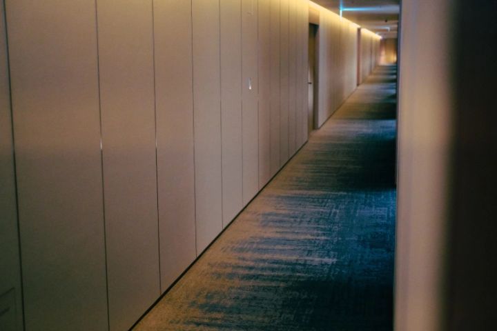 また、お部屋までの廊下も優しい光で落ち着いた雰囲気を演出。床は波打ち際をイメージしたデザインになっています。
