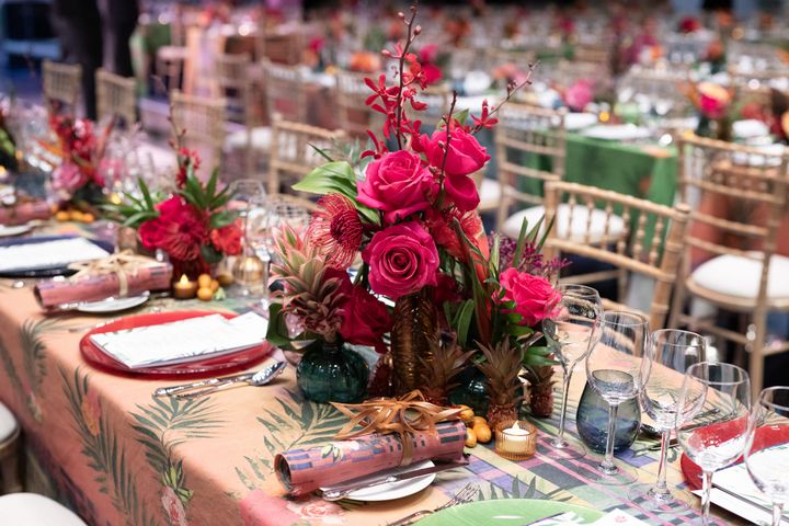 長年にわたり、ファッション界の巨匠たちによって彩られてきたこの舞踏会。故カール・ラガーフェルドの後、2022年からはクリスチャン・ルブタンが指揮を継承。今年は「サンセット」をテーマに、ボタニカルなデコレーションや、夕焼けの色彩が溶け込むような、ロマンチックな空間が生み出されました。