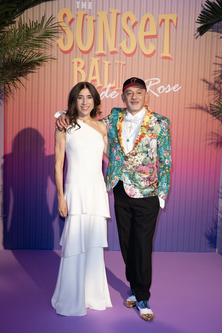 「薔薇の舞踏会2025」のプロデューサー、クリスチャン・ルブタンと振付師で映画監督のブランカ・リーの2ショット。ミニマルなホワイトドレスと、アロハ・シックなジャケットのコントラストが、お互いの個性を引き立たせて。