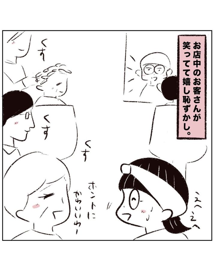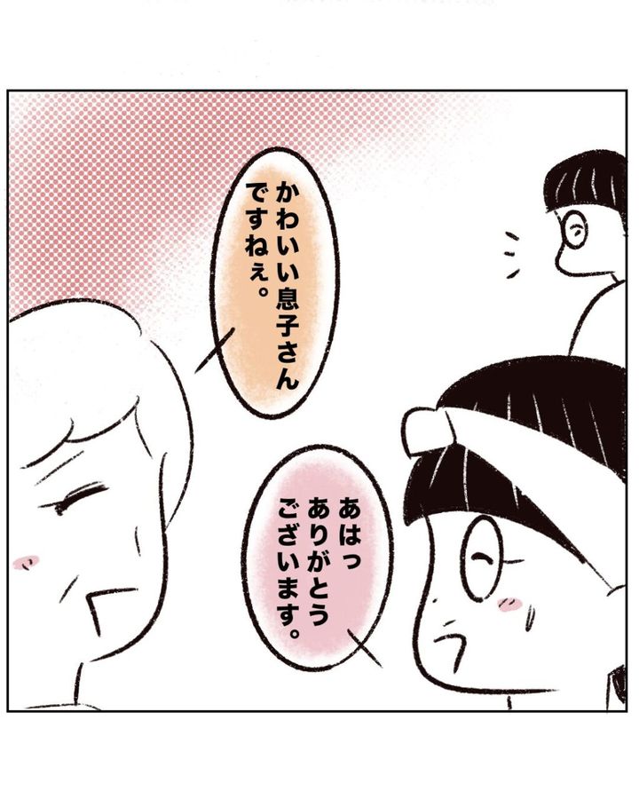 アキくんと美容師さんのやり取りを見ていた別のお客さんが、「かわいい息子さんですねぇ」とまるさんに声をかけてくれました。まるさんは、嬉しいような恥ずかしいような気持ちで、「ありがとうございます」と微笑みます。