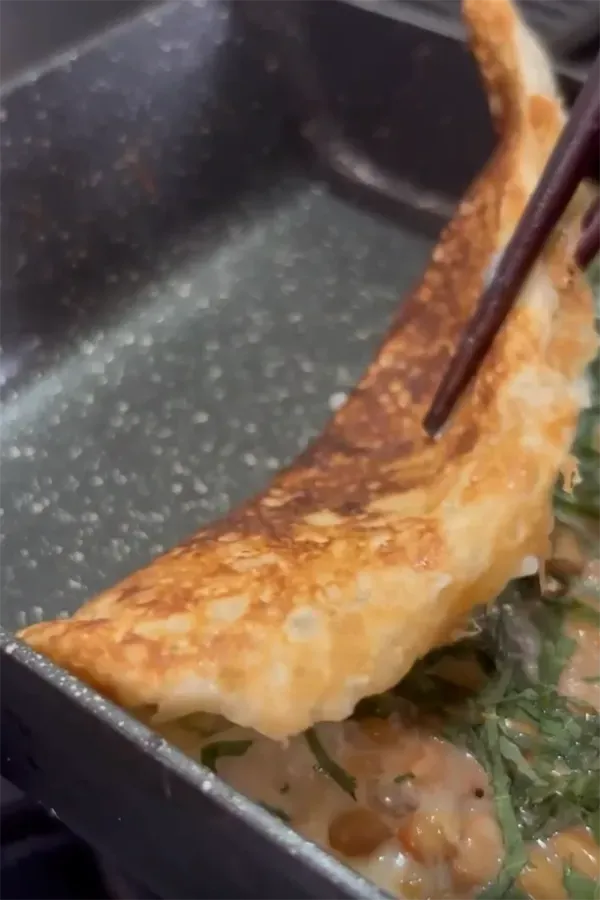 焦らず様子を見ながら、弱火でゆっくり焼くのがポイント。ぜひ『大葉チーズ納豆』の味わいを楽しんでみてください!