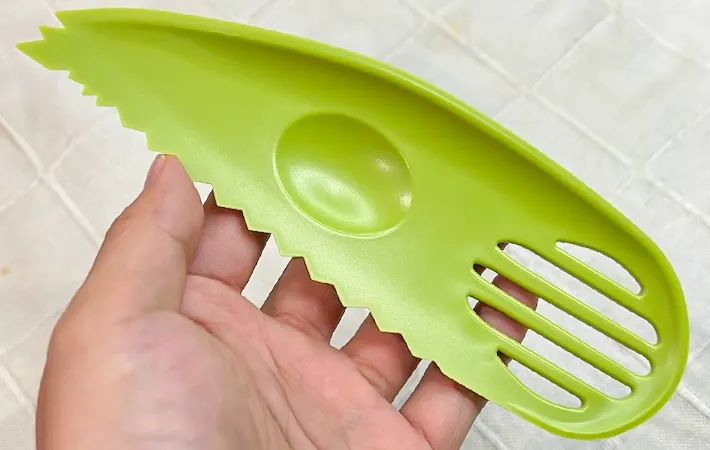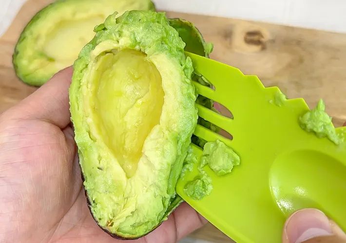 『アボカドカッター』なら、切ってから潰すまでの工程をスムーズにできるため、空気に触れる時間が短く、きれいな色のままアボカドを調理に使えそうです。