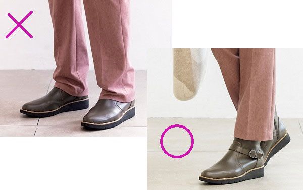 パンツ丈は足首が見える丈で、靴下ではなくストッキングかタイツを合わせて、すっきり見せることを意識しましょう。