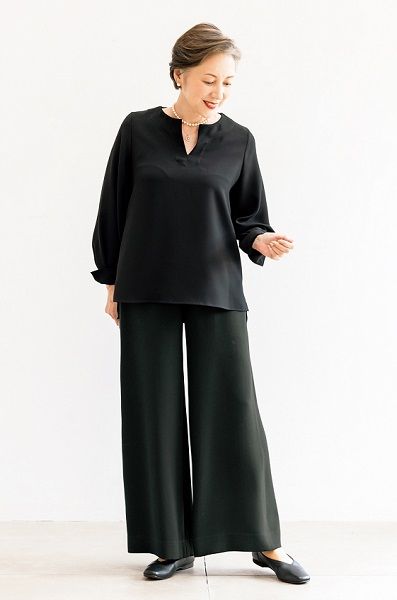 「パンツのシルエットが美しいので、シンプルなトップスと合わせてもおしゃれな着こなしに見えます。カジュアルにもキレイめにも着られる振り幅の広さも魅力です」(岡部さん)