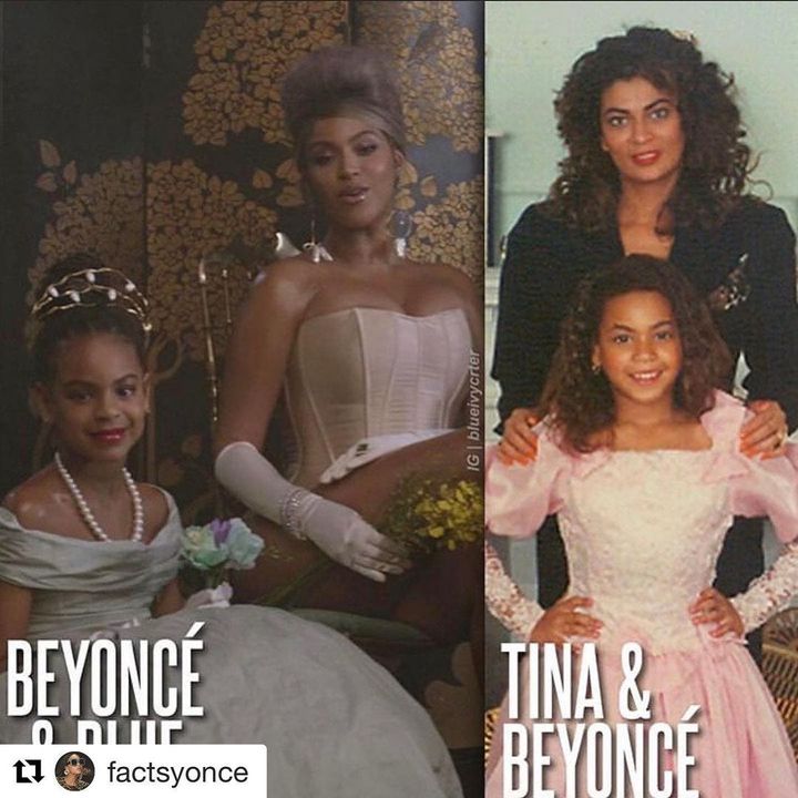 ビヨンセの母ティナは「Brown Sking Girl」のMVに登場するビヨンセ&ブルー・アイビー親子の写真を、自分とビヨンセの思い出写真と比較。「時間はどこにいったのでしょうか?❤️」と綴っている。