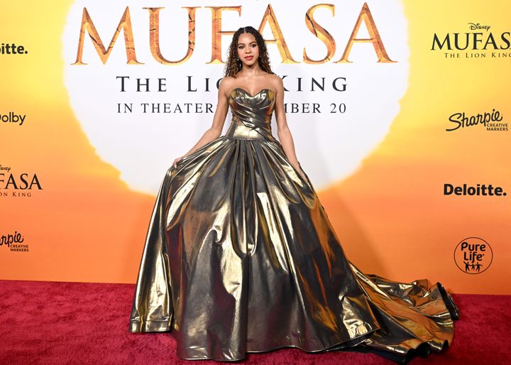 2024年12月9日、『ライオン・キング:ムファサ 』のLAプレミアに神々しいゴールドのドレスで降臨したブルー・アイビー。