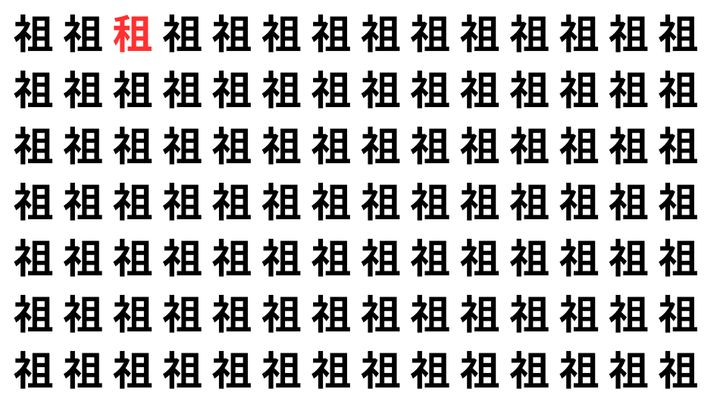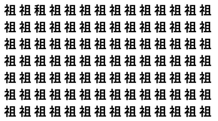 たくさんの「祖」の中に、よく似た別の漢字が1文字だけ隠れています。