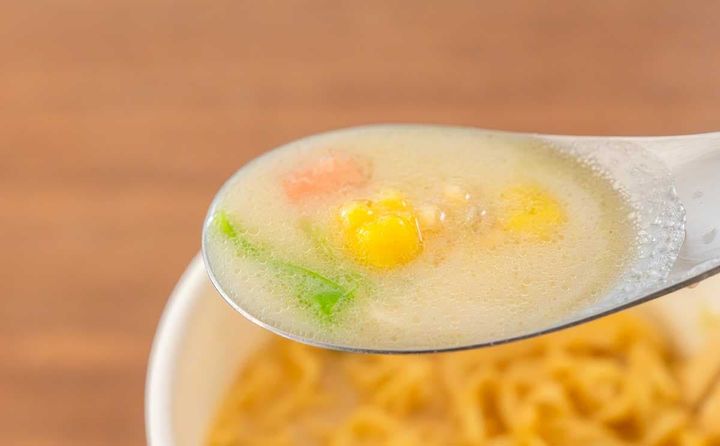今回登場した商品は、魚介と豚骨のうまみをきかせた「シーフードヌードル」のスープをベースに、北海道産の粉乳を加えることで、甘みとコク深さのあるクリーミーで濃厚な味わいが特長となっています。