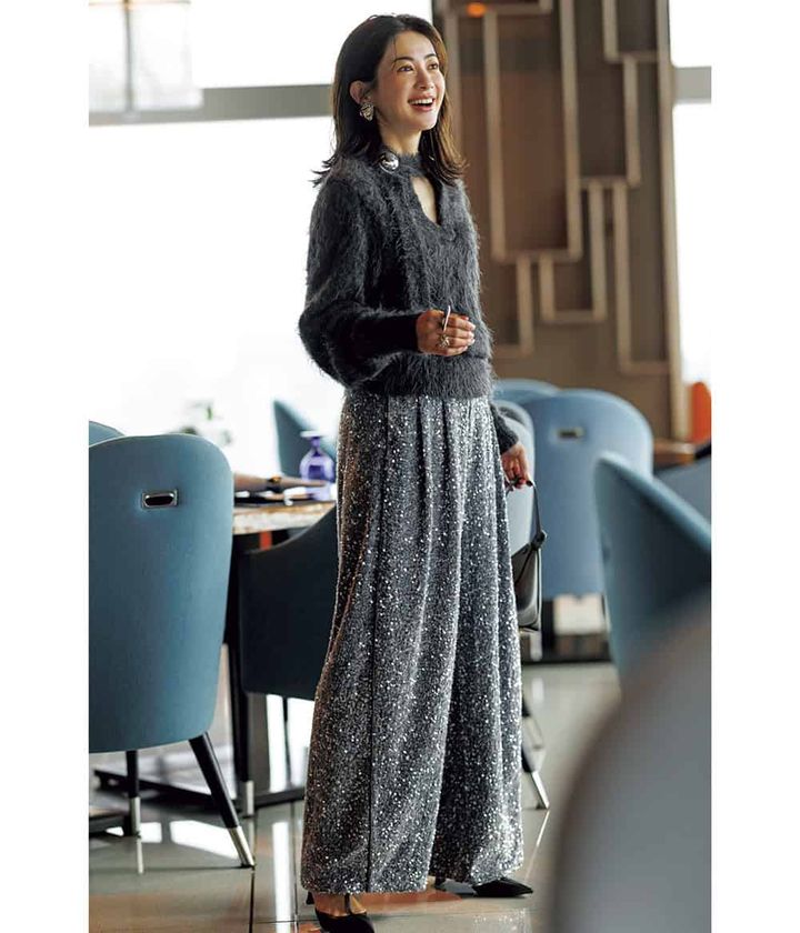 パンツ派40代の「年末イベントコーデ」は【華やぎ主役パンツ】に頼るのが正解!