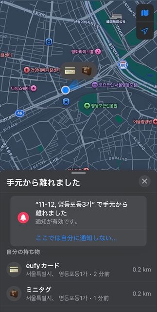 登録が完了すると、アプリ上で持ち物の場所を確認できる
