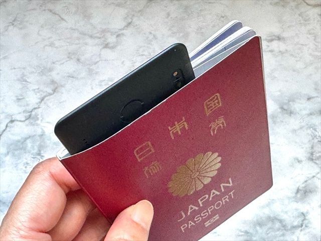 Eufy SmartTrack Card E30は、薄くてパスポートに挟みやすい