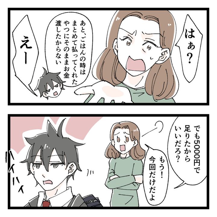 3. 息子に渡した5千円は参考書と友達に誘われて行った食事代。信じて疑わなかった母。高校生のお金トラブル|ママ広場マンガ