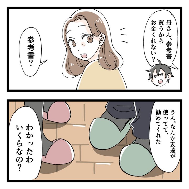ある日、珍しく息子のショウが参考書を買いたいと言ってきました。お友達が勧めてくれたそう。勉強にやる気が出たのかしら。嬉しくなった私はそういうことなら喜んで支払います。